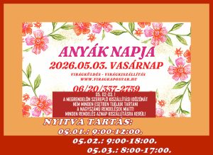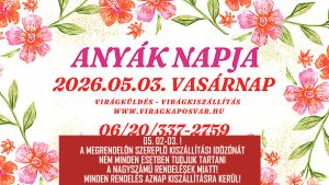ha adott napon szeretne rendelést leadni 8-16-ig terjedő időszakra (virágküldésre), akkor vásárlás előtt telefonon egyeztessen velünk (06/20/337-2759)s ha van szabad kapacitásunk a 8-16-ig terjedő időszakra is meg tudjuk oldani a kiszállítást!