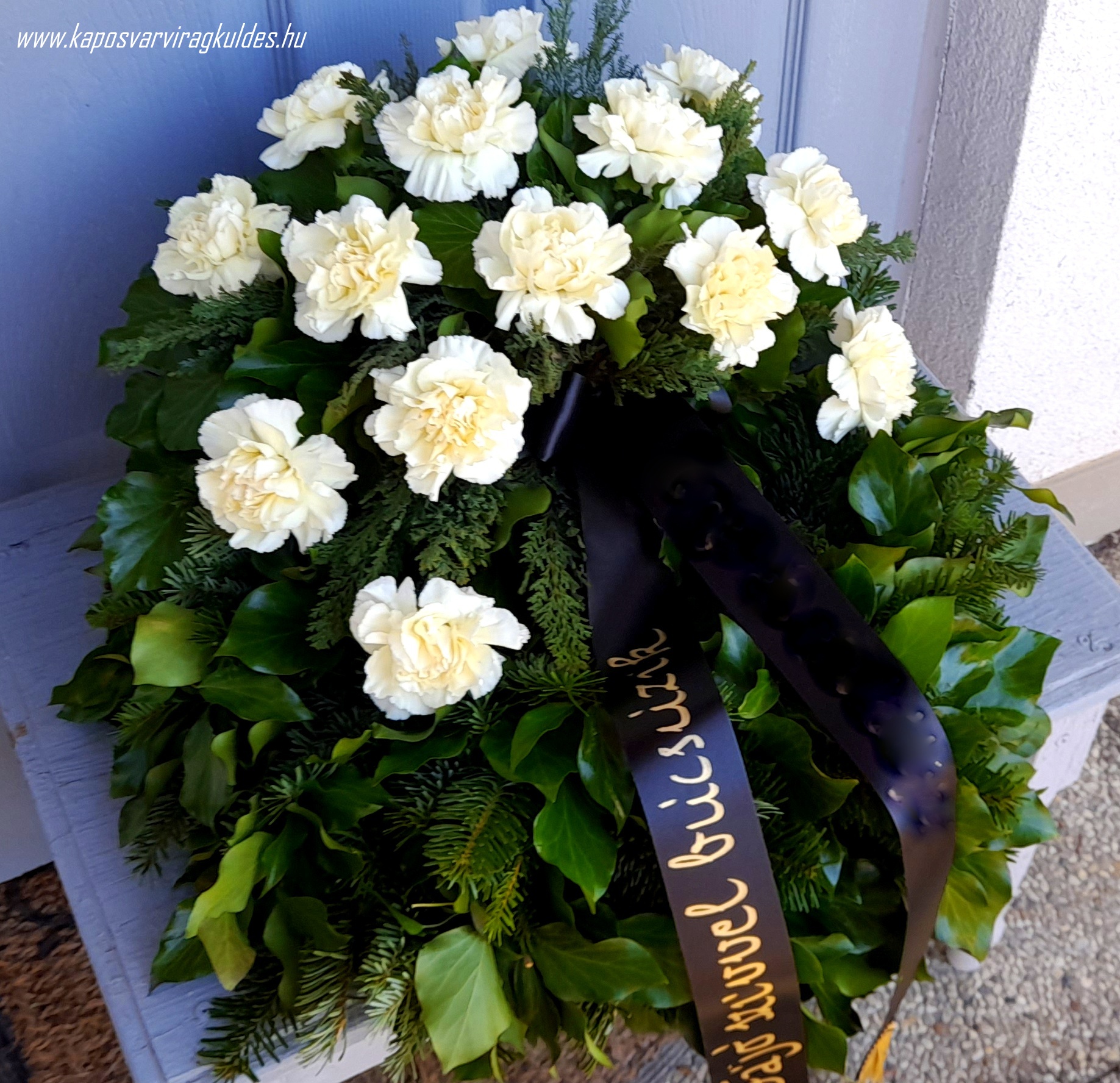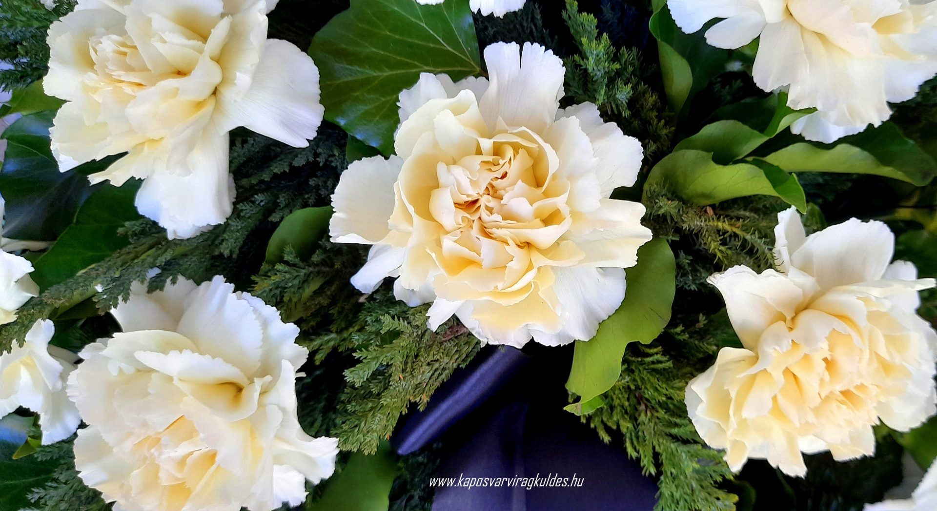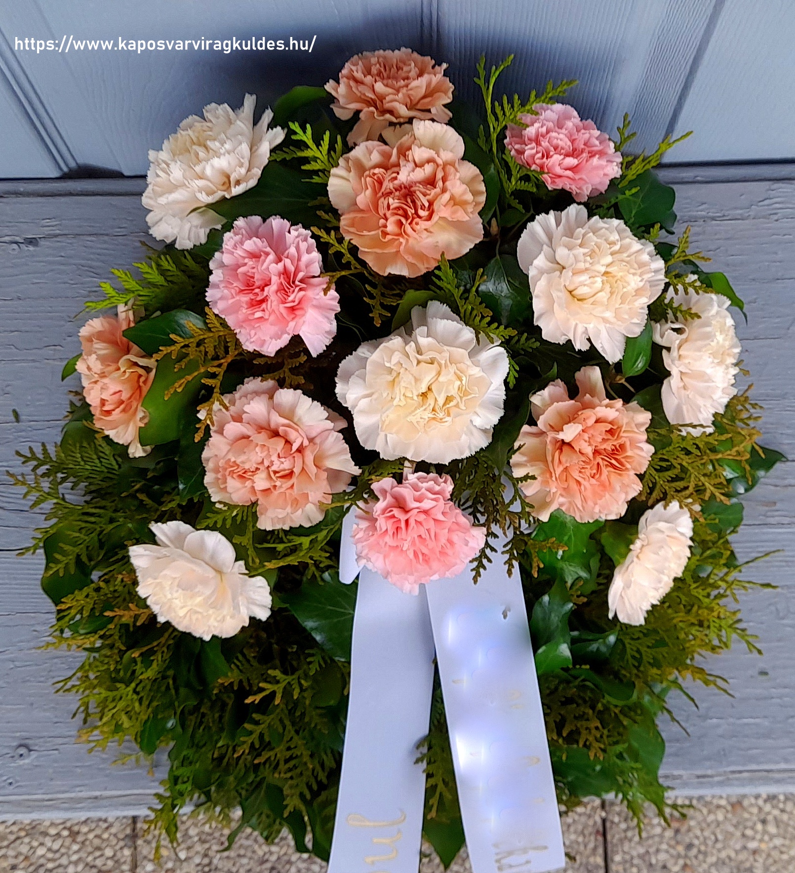 A megjelenített fotók illusztrációként szerepelnek és tájékoztató jellegűek! Kizárólag friss virágokkal készítjük termékeinket, így a koszorúban látható virágok mennyisége, az aktuális friss virágárakat figyelembevéve eltérnek, természetesen az esztétikai megjelenés szinvonalának maximális figyelembevételével! Tekintettel arra, hogy a virág egy friss termék így előfordulhat, hogy a kiválasztott koszorú valamelyik eleme nincs készleten. Ilyen esetben, a készleten lévő legszebb virágokból készítjük a csokrot. A koszorúink vizes tűzőhabban készülnek, így biztosítva a virágok tartósságát. Az ár tartalmazza a szalag és felirat árát. A Virág Kaposvár Virágüzlet fenntartja magának a jogot, hogy egy minőségében, stílusában, formájában, tartalmában és méretében hasonló terméket szállítson.